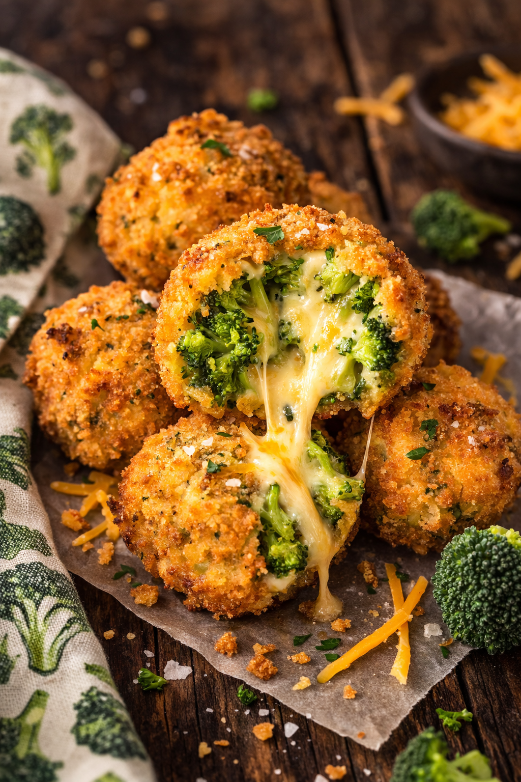 Crispy crunchy outside and tender broccoli and cheese centers. A fun and different way to eat up your veggies for dinner or even as a snack.