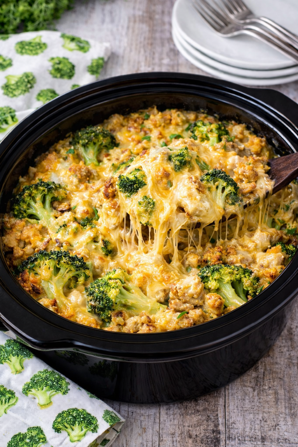 Slow Cooker Cheesy Chicken Broccoli Casserole