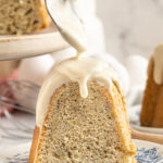 Pour the cake batter into the prepared bundt pan and smooth out.