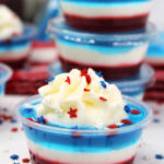 Pour the white layer on top of the set blue layer filling another 1?3 rd of the way.