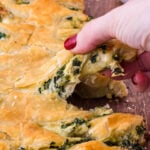 Use a pizza cutter or a knife, carefully cut out the outline of the spinach dip. Discard any excess pastry.